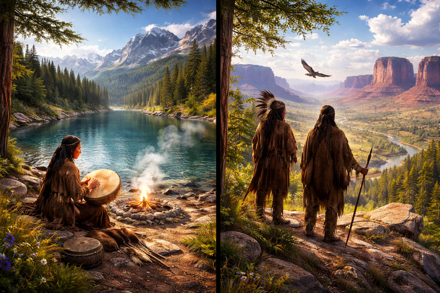 - Diversidad Geográfica: Desde los Inuit en el Ártico hasta los Pueblo en los desiertos del suroeste, cada nación adaptó su música a los sonidos de su entorno. Las canciones de las llanuras (como los Lakota) son amplias y abiertas como sus horizontes; la música de los bosques del este es intrincada y rítmica como la vida entre los árboles.